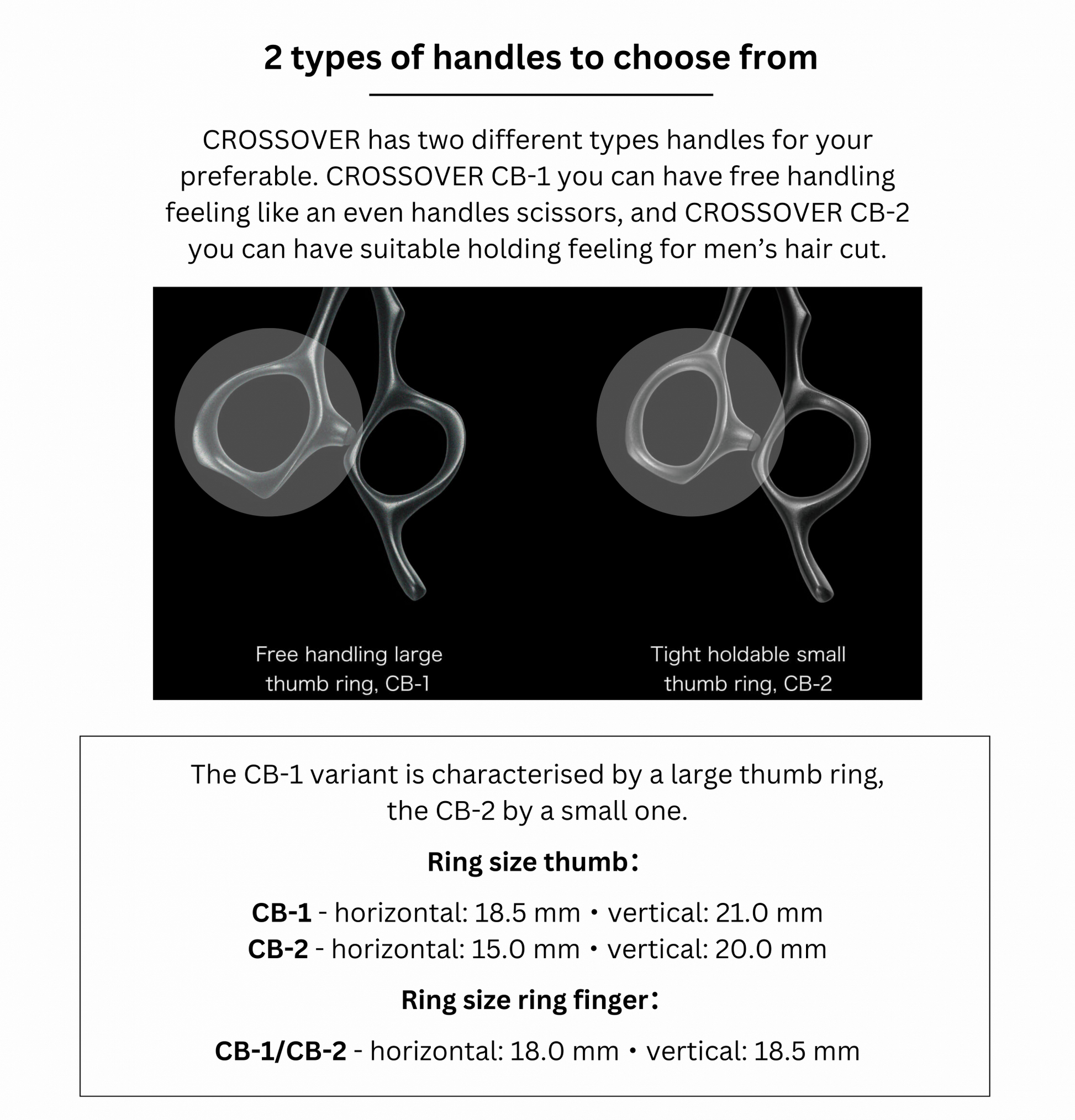 Дизайнът й е съвместим с всички техники и е подходящ за всички фризьори, независимо дали са бръснари или стилисти. CR1 има по-широка ръкохватка, докато CR2 има тънък захват за хора с по-малки ръце.