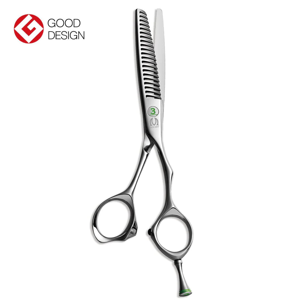 Ichi-Nino-San #3 е перфектен за първоначално оформяне на прическа. Тънките остриета ги правят особено ефективни за рязане по линията на тила и на върха. Това са универсални ножици, които могат да поемат всяка ситуация. Проектиран с плосък винт, който може да се регулира от задната страна, и подвижна опора за пръсти.